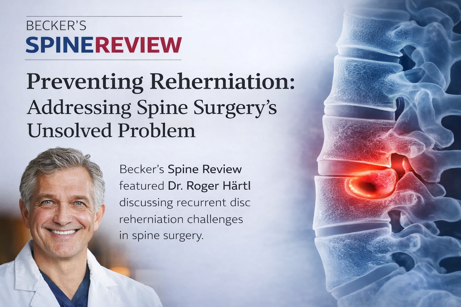 Becker’s Spine Review featured Dr. Roger Härtl discussing one of the most persistent challenges in spine surgery — recurrent disc reherniation following discectomy.